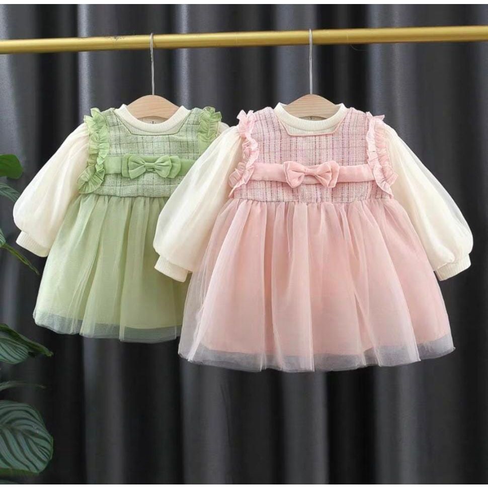 PROMO DRESS ANAK MEWAH BAJU DRESS BUNGA BANDANA SEPATU PERGI LUCU FASHION ANAK BAYI PEREMPUAN CEWEK LINDSAY