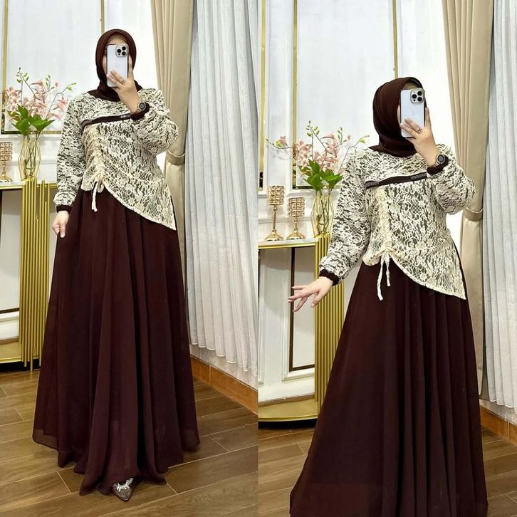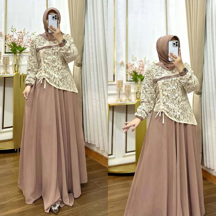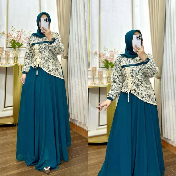 gamis wanita kekinian Aurelia Dress Ceruty Babydoll Mix Brukat Aplikasi Payet Swarovski Gamisgamis lebaran 2026