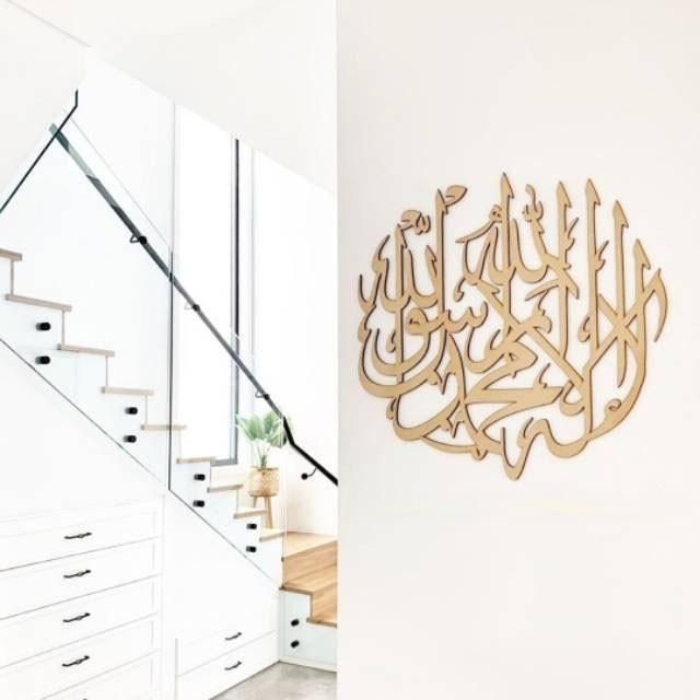 DEKORASI DINDING KALIGRAFI BESAR TAUHID BULAT PAJANGAN KAYU TB HIASAN ISLAMI TULISAN BAHASA ARAB TERLARIS