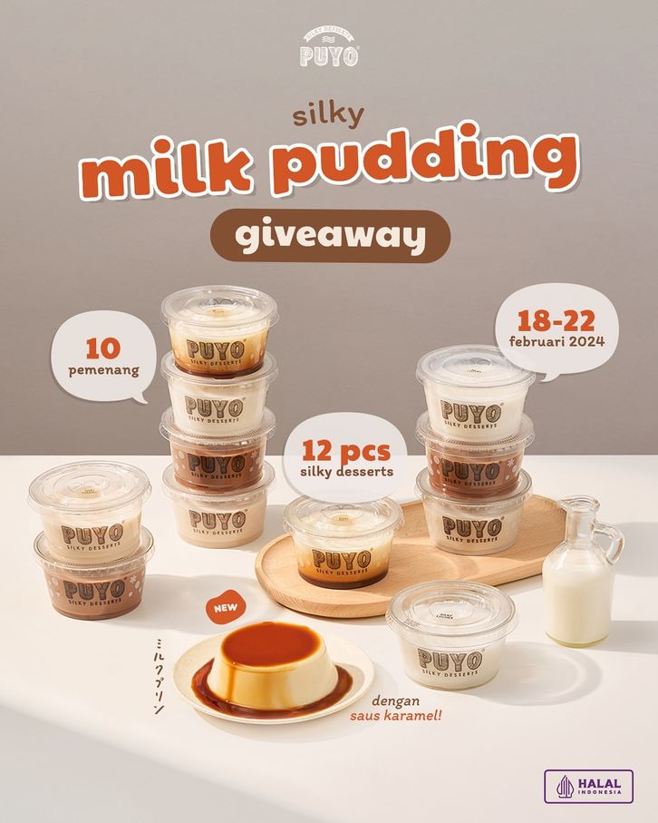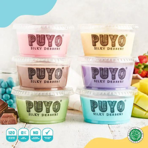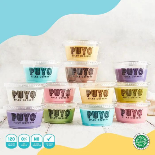 Yakult Mango, Milky Mango, Yakult Peach, Milky Peach, Yakult Blue Citrus, Milky Blue Citrus, Milky Brown Sugar, Yakult Strawberry, Milky Strawberry, Milky Iced Chocolate, Milky Green Tea, Yakult Green Tea, Milky Banana, Milk Tea, Choco Milk Tea, Iced Latte, Iced Caramel Latte, Puyo Eid Hampers (Mix Flavor), Paket 1 Lusin Puding Puyo, Paket 1/2 Lusin Puding Puyo, Silky Matcha, Silky Korean Strawberry, Silky Bubblegum, Silky Chocolate, Silky Taro, Silky Mango, Silky Cookies & Cream, Silky Lychee, Silky Vanilla, Silky Peach, Silky Chocolate Malt, Silky Milk Pudding