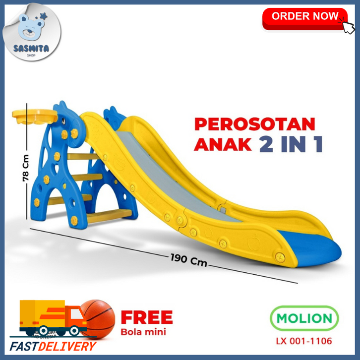 Mainan SNI Perosotan Anak Mainan Prosotan HDPE Seluncuran Anak Playground Free Ring Basket Berstandar 001-M1106
