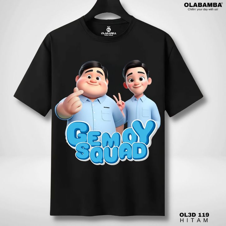 Kaos Distro Pria Wanita Cotton Combed 24s GEMOY SQUAD Baju Atasan Pria Wanita Distro Warna Hitam Putih Ukuran S, M, L,
