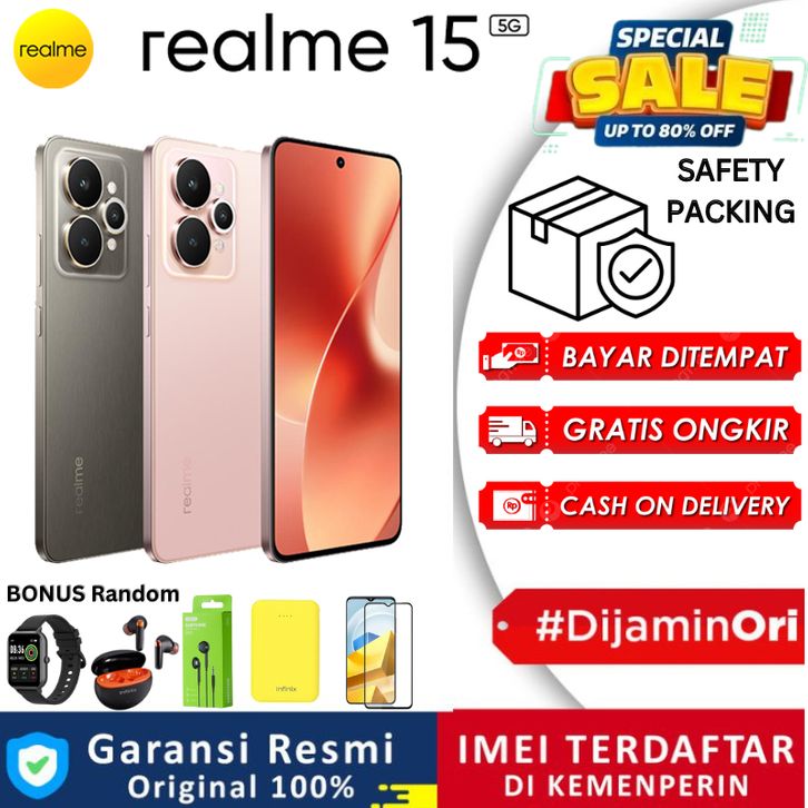 [Official Store✔] Realme 15 5G NFC 256GB 26GB 18GB 50MP Sony AI Camera | Dimensity 7300+| 7000 mAh 80w Garansi Resmi