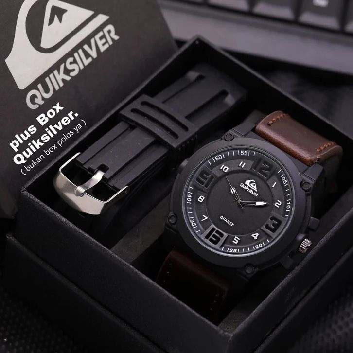 Jam Tangan Pria Fashion Quiksilver Strap Kulit Free Tali Strap Rubber