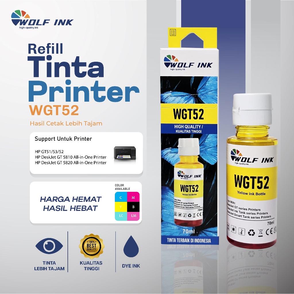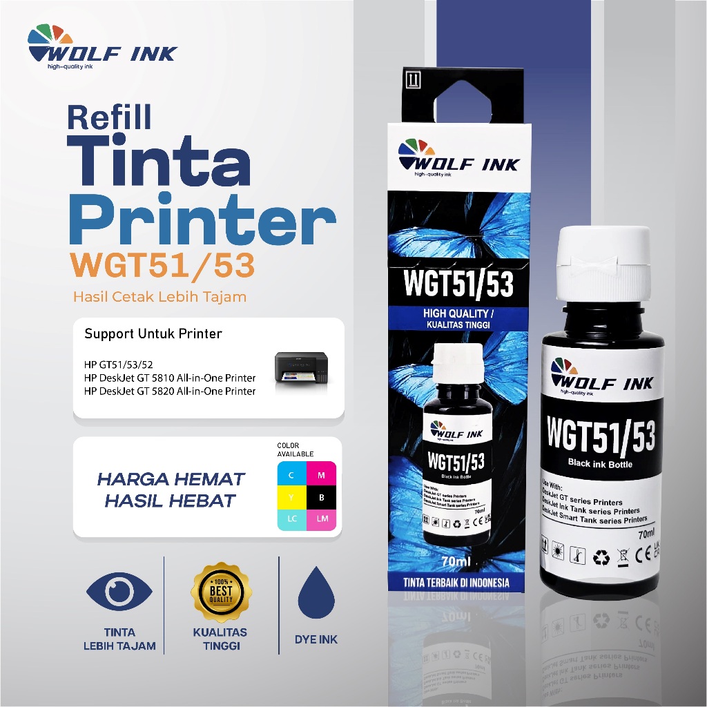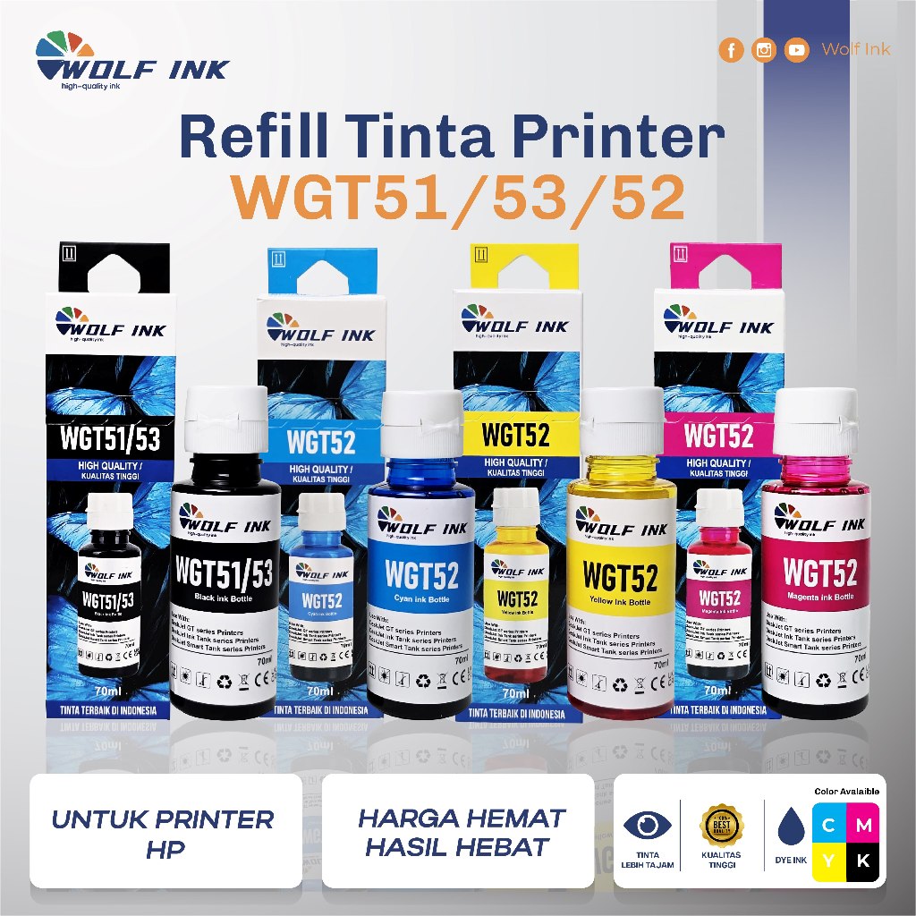 TINTA PRINTER 1 SET HP GT53 GT52 GT51 UNTUK PRINTER INKTANK 315 319 410 415 418 419 GT5810 GT5820
