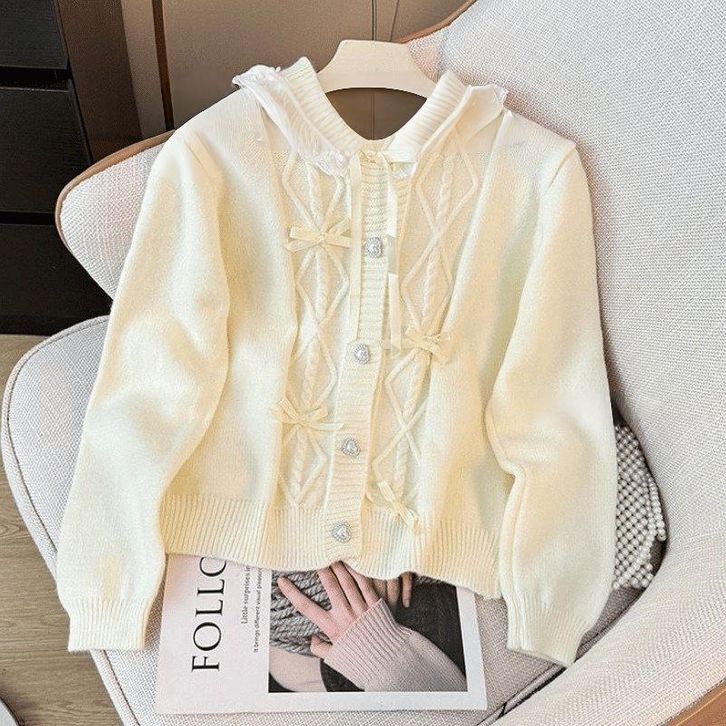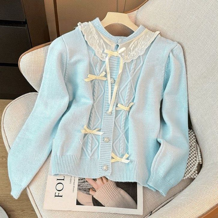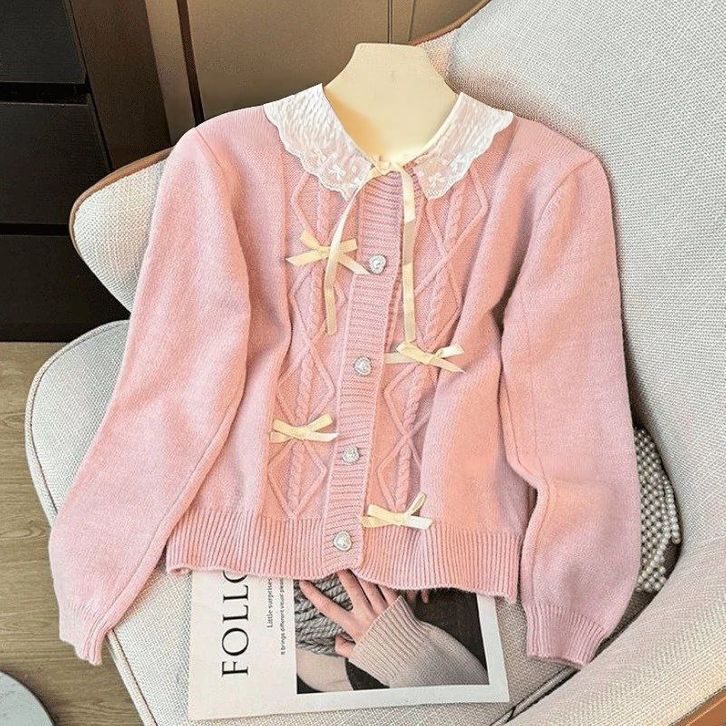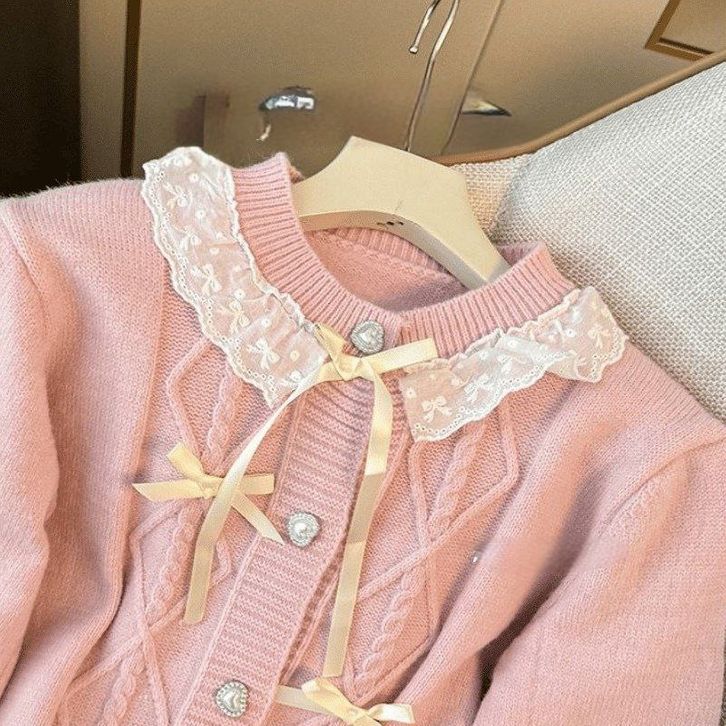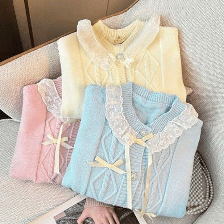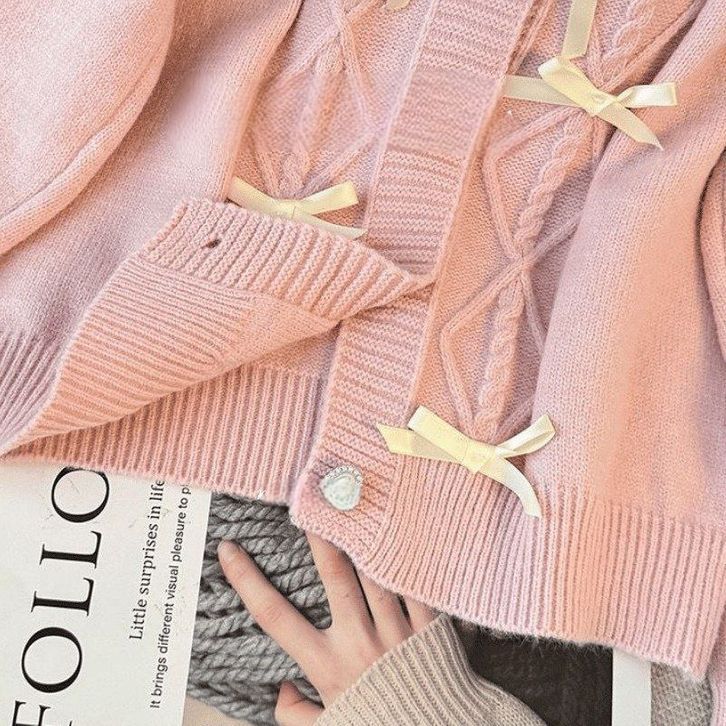 Atasan Cardigan Rajut Ribbon Knit Top Baju Pita Coquette Aesthetic Korean Style Lembut Nyaman Dipakai