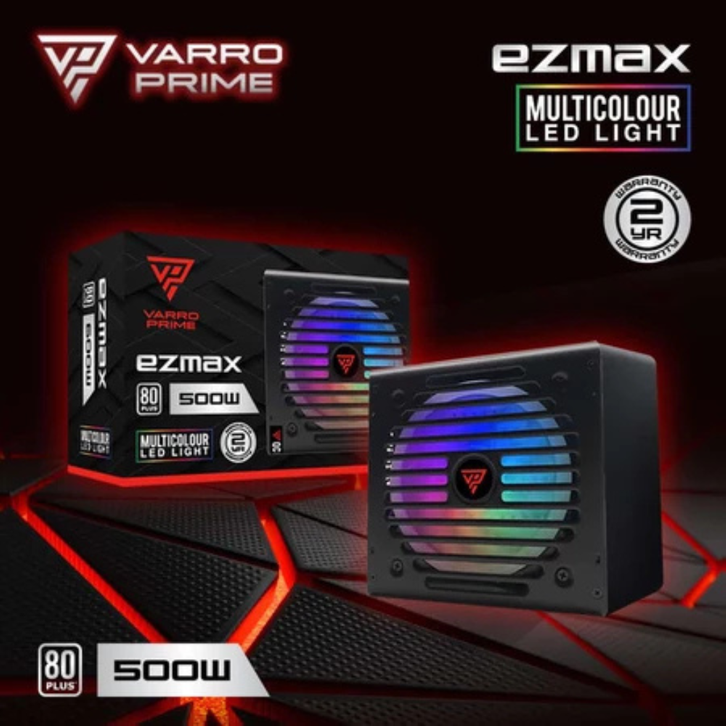 VARRO EZMAX CHRONOS POWER SUPPLY 600W 500W RGB 80+ PSU SILENT FAN 120MM OPTIMUM POWER OUTPUT ULTRA HIGH EFFICIENCY