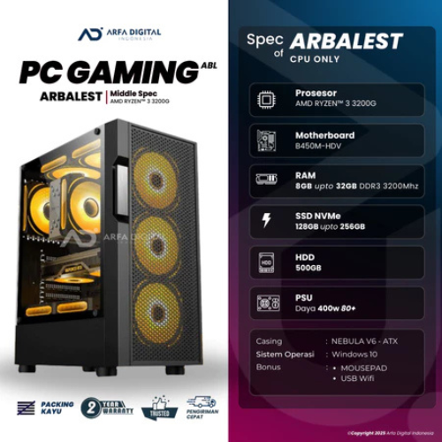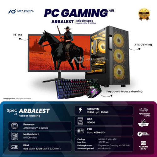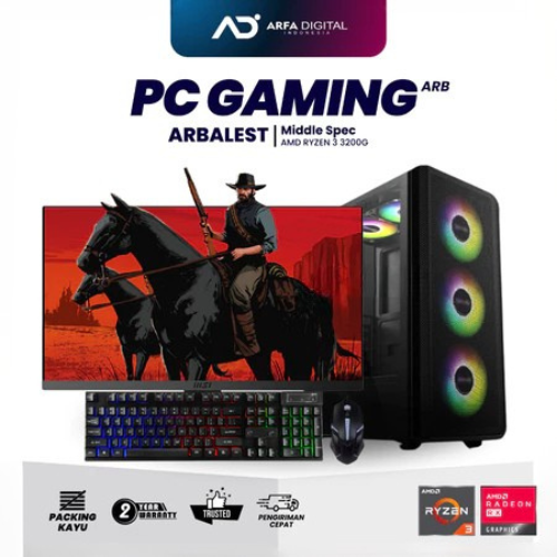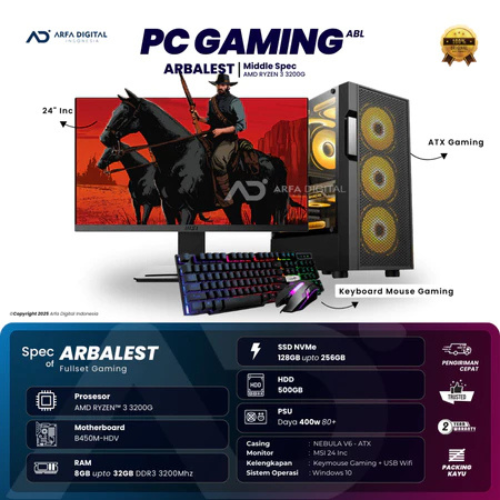 PC GAMING KOMPUTER RAKITAN FULLSET RYZEN 3 3200G RAM 32GB SSD 256GB LENGKAP MONITOR 24 INCH ARBALEST SIAP PAKAI