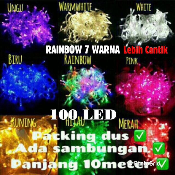 BIRU 50 LED, Biru 100 LED, HIJAU 50 LED, Hijau 100 LED, KUNING 50 LED, Kuning 100 LED, MERAH 50 LED, Merah 100 LED, PINK 50 LED, PUTIH 50 LED, Pink 100 LED, Putih 100 LED, RAINBOW 50 LED 7 WRN, RANDOM WARNA 50 LED, Rainbow 100LED 7 WRN, UNGU 50 LED, Ungu 100 LED, WARM WHITE 50 LED, WHITE BLUE 50 LED, Warm white 100 LED, White Pink 100 LED