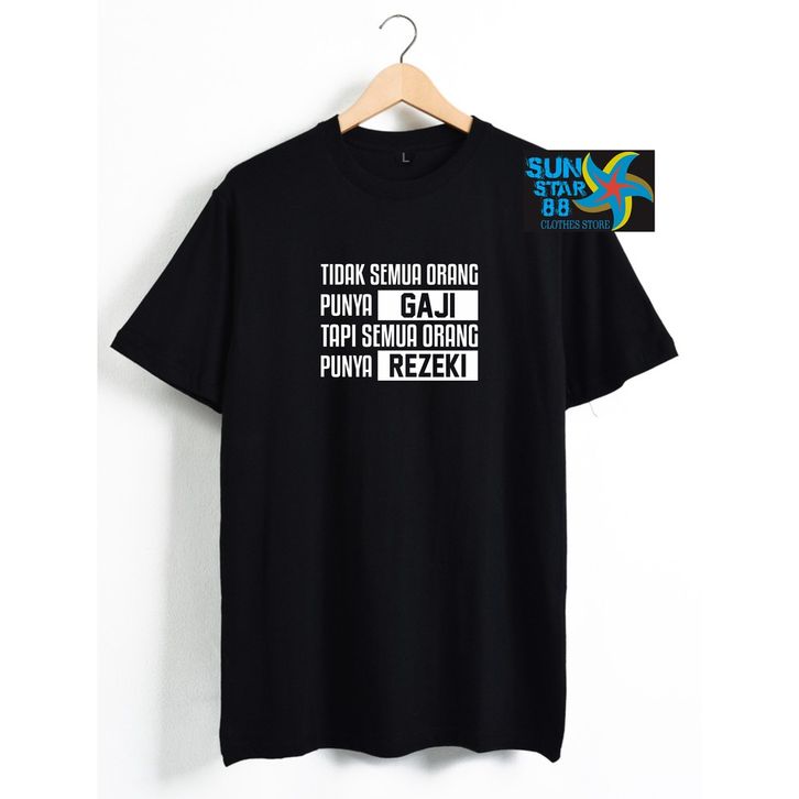 Kaos Dakwah Kasual Kata Bijak Sabar Rezeki Gaji Baju Cowok Muslim Keren Warna Hitam Putih Bahan Soft Pe High Quality