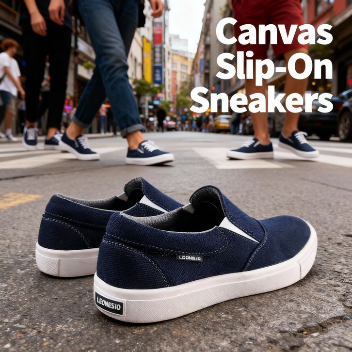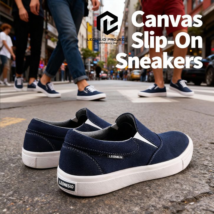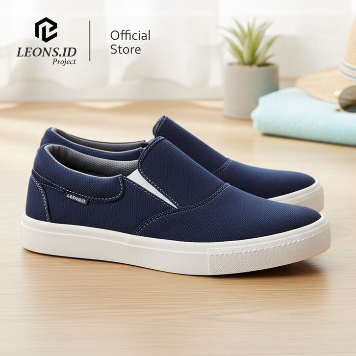 AIRON NAVY | SAIRASHOES - LEON | Sepatu Slip On Pria Navy Kanvas Casual Original