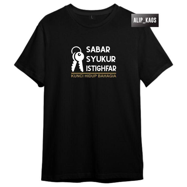 Kaos Cowok Dakwah Sabar Ikhlas Istighfar Santri Islam Baju Atasan Lengan Pendek Hijrah Warna Hitam Bahan Premium