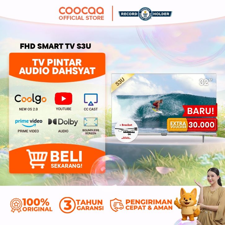 [Star] [+ BRACKET] COOCAA 32 inch Smart TV S3U Digital TV Flick Free Boundless WIFI USB/AV/LAN OS Coolita (COOCAA 32S3U)
