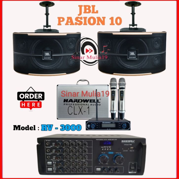 Paket Karaoke JBL Pasion 10 Original Ampli Hardwell RV3000 Mic CLX 1