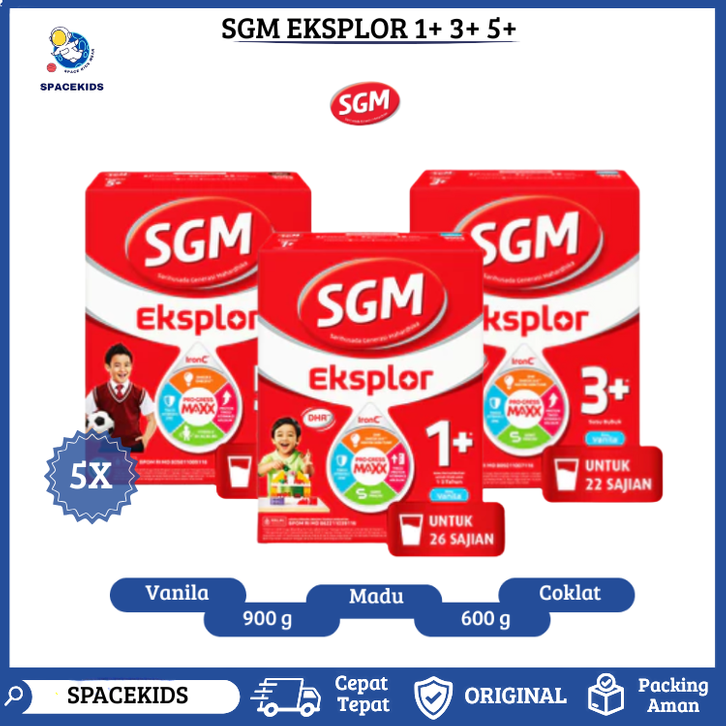 SGM EKSPLOR 1 3 5 PLUS 1+ 3+ 5+ DENGAN IRON C SUSU PERTUMBUHAN ANAK VANILA MADU COKLAT 900GR 600GR 1 3 5 TAHUN 4 5 KOTAK