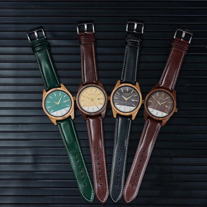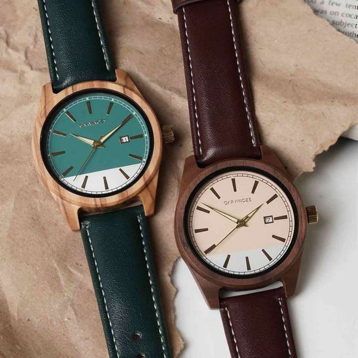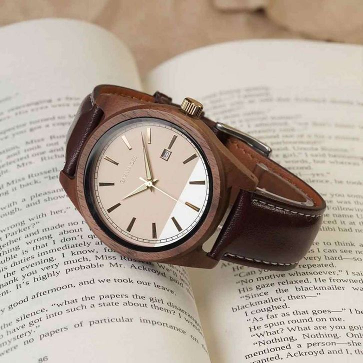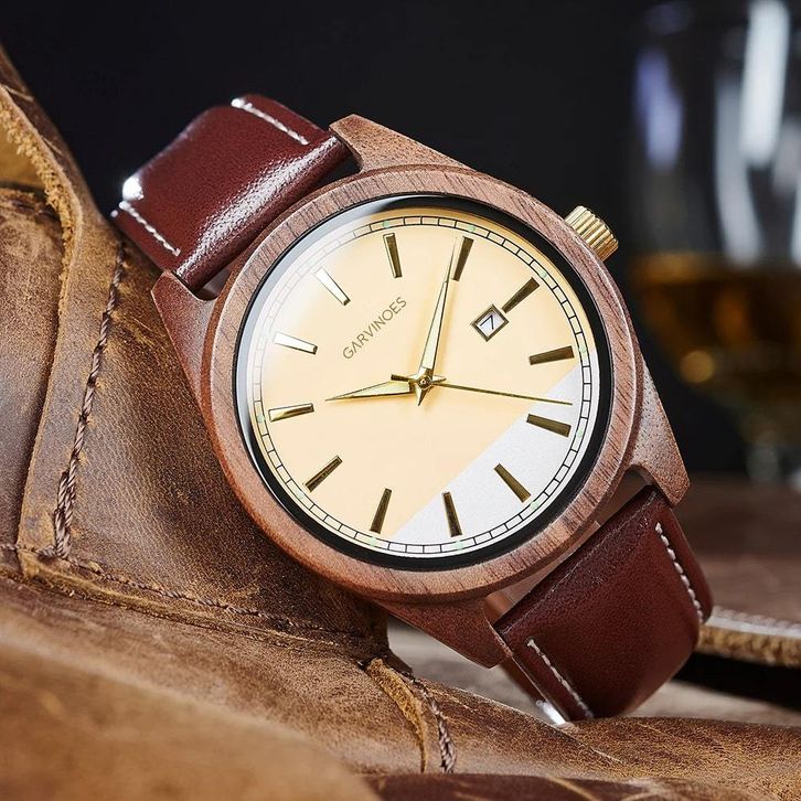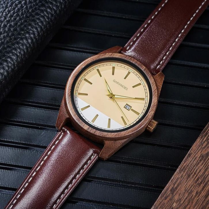 GARVINOES Dome Beige Brown Jam Tangan Kayu Pria 44 mm