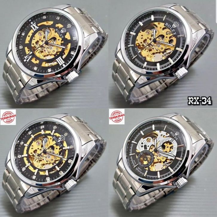 Jam Tangan Pria Otomatis Skeleton Big Chain Rantai SilverHitam