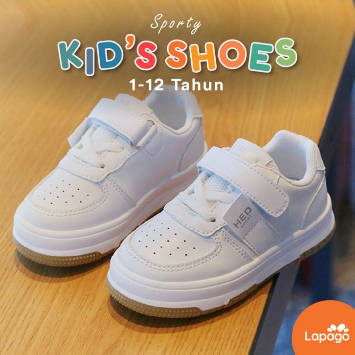 LAPAGO - Sepatu Sneaker Casual Anak Laki Laki Perempuan Putih Import Usia 1 - 12 Tahun Type MFV