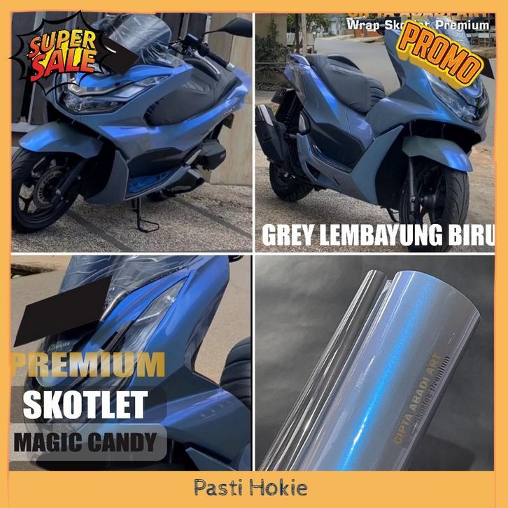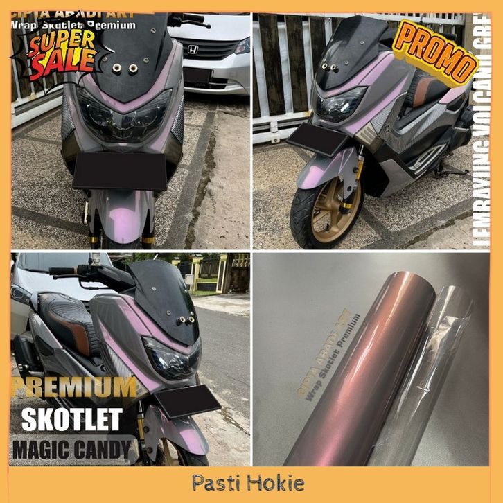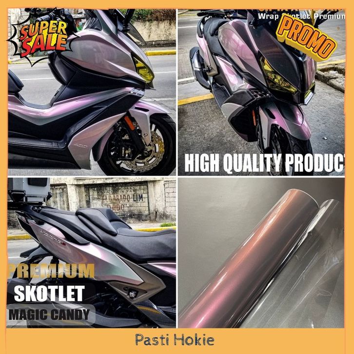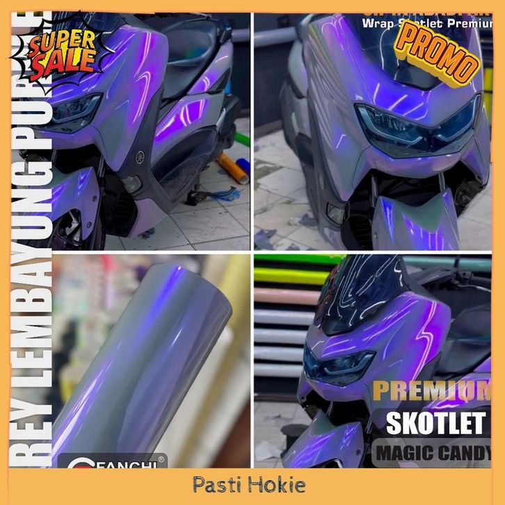 Skotlet stiker motor magic candy glossy sticker lembayung grey purple scotlite bunglon biru merah lebar 50cm