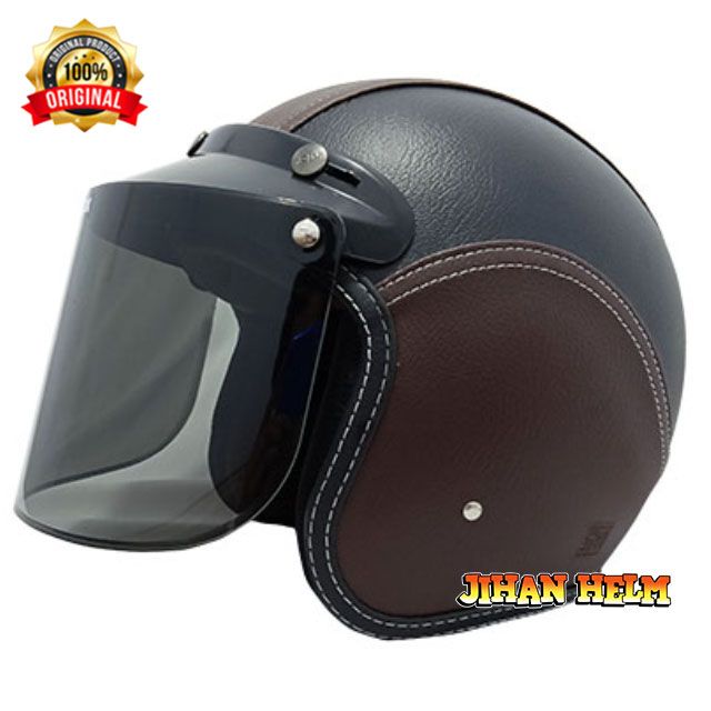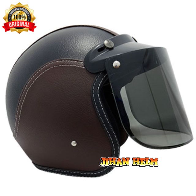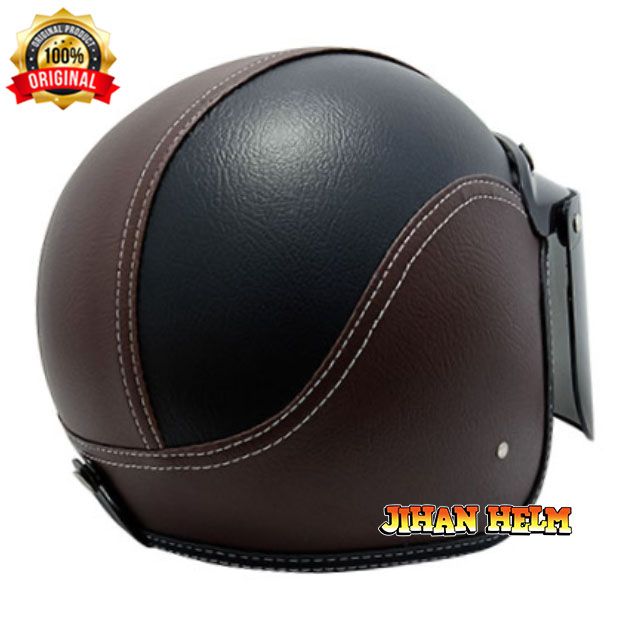 Helm Retro / Helm bogo kulit hitam coklat termurah