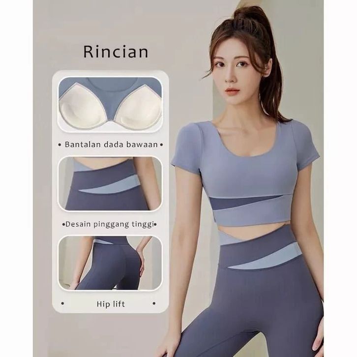 setelan baju olahraga wanita t-shirt &celana yoga pinggang zeb SET-CRML