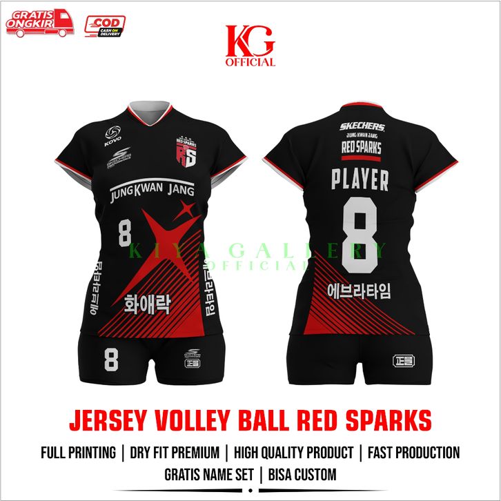 JERSEY VOLI WANITA RED SPARKS FULL PRINTING GRATIS CUSTOM NAMA DAN NOMOR