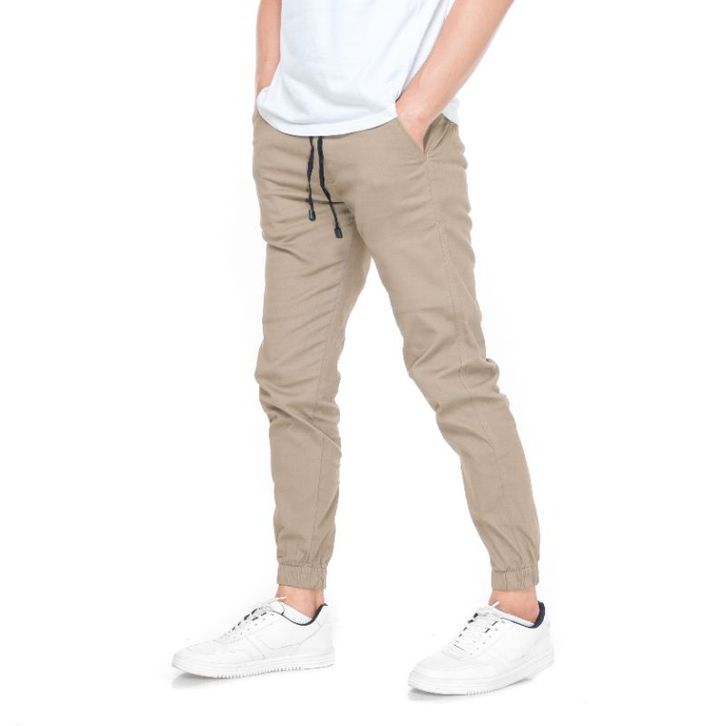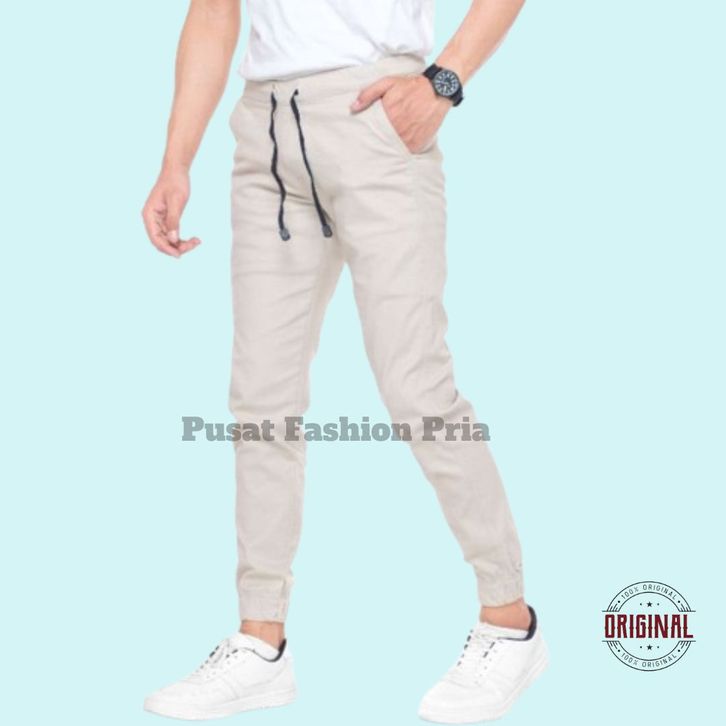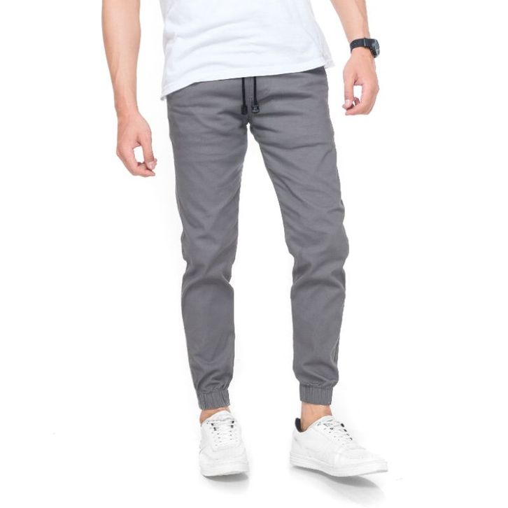 Celana Panjang Joger Pria Korean Style Bahan Katun Pinggang Karet Slim Fit Kualitas Premium