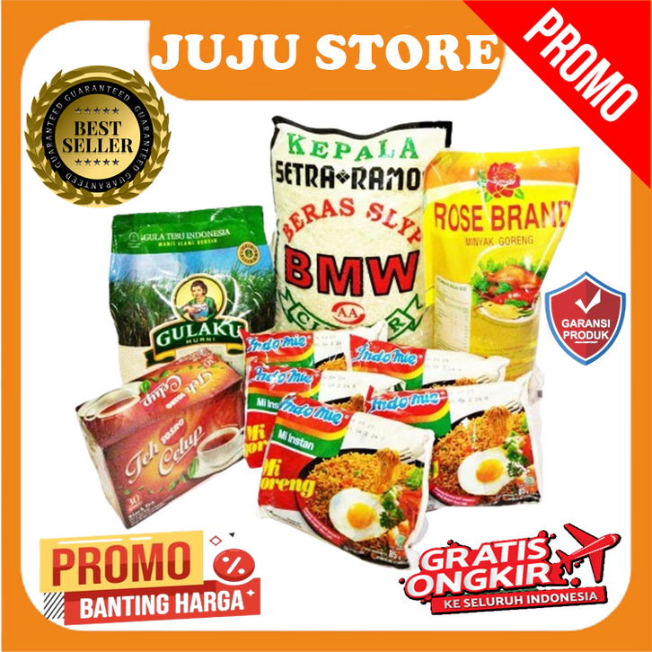 Paket Sembako Lengkap 5 macam Beras,Minyak,Gula,Teh,Indomie (GRATIS ONGKIR)