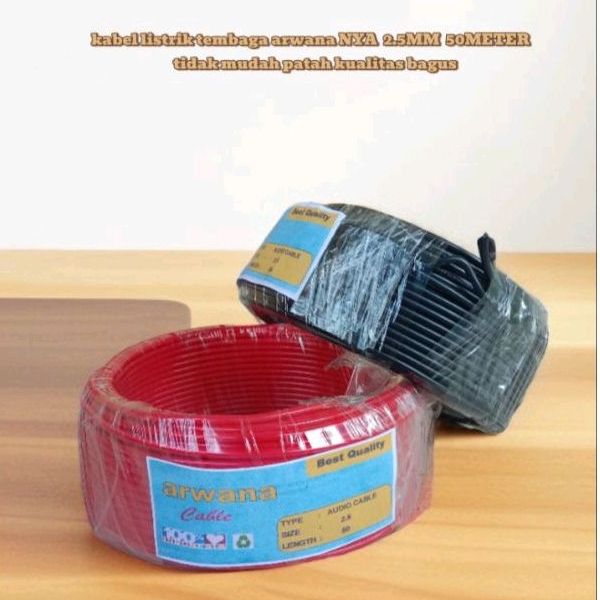 KABEL LISTRIK TEMBAGA ARWANA Kabel NYA 2.5mm 100 YARD GRATIS 1pcs LAMPU 10WATT kabel tembaga tunggal biasanya untuk