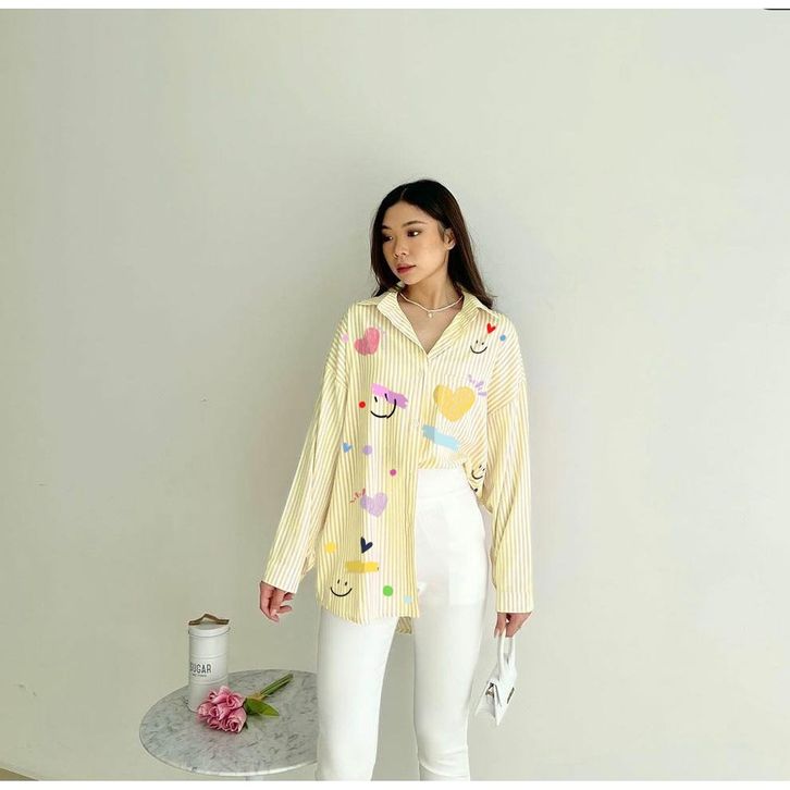Kemeja Wanita Oversize smile candy Stripe Salur Paste xxl