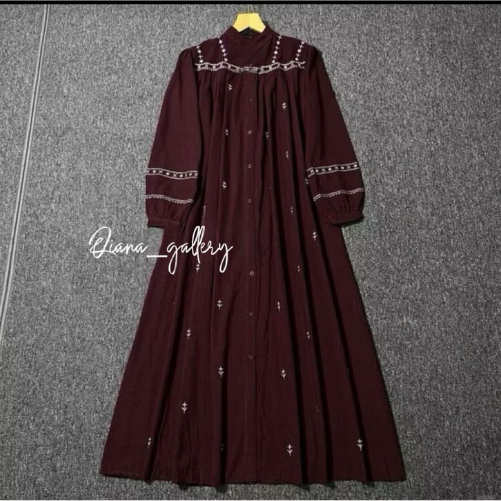 Gamis Wanita Terbaru 2025 Davina Dress Rayon Twill Bordir Premium By QIANA_GALLERY Panjang Baju 135cm Lingkar Dada 120cm