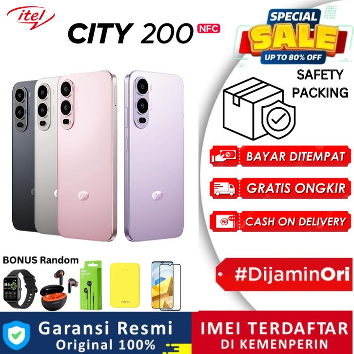 [Official Store✔] itel City 200 NFC 5200mAh 18W Fast Charge 128GB 12GB(4+8GB) EXTENDED RAM Garansi Resmi 12 Bulan