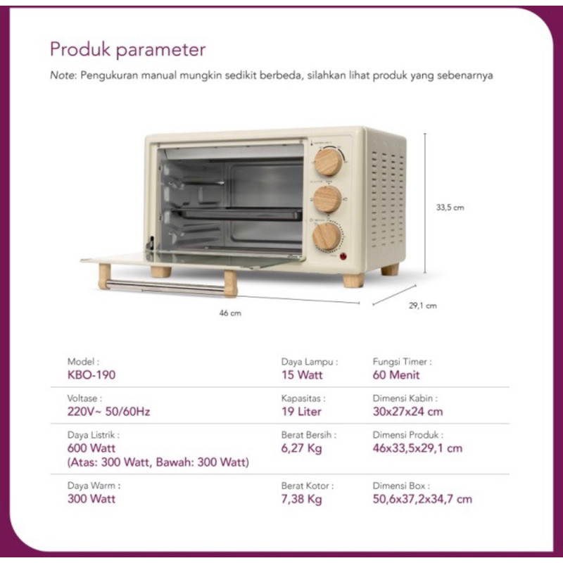 KIRIN OVEN LISTRIK TOASTER LOW WATT KBO 190 LOW WATT 19 LITER KBO 190LW - OMNI OVEN KBO190 LW