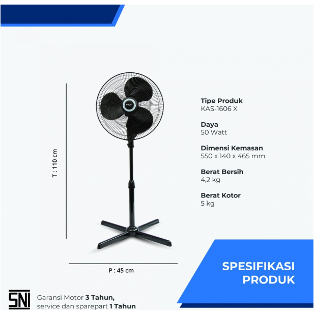MIYAKO KIPAS ANGIN BERDIRI 16" STAND FAN BLACK 1606X KAS-1606 X 1606