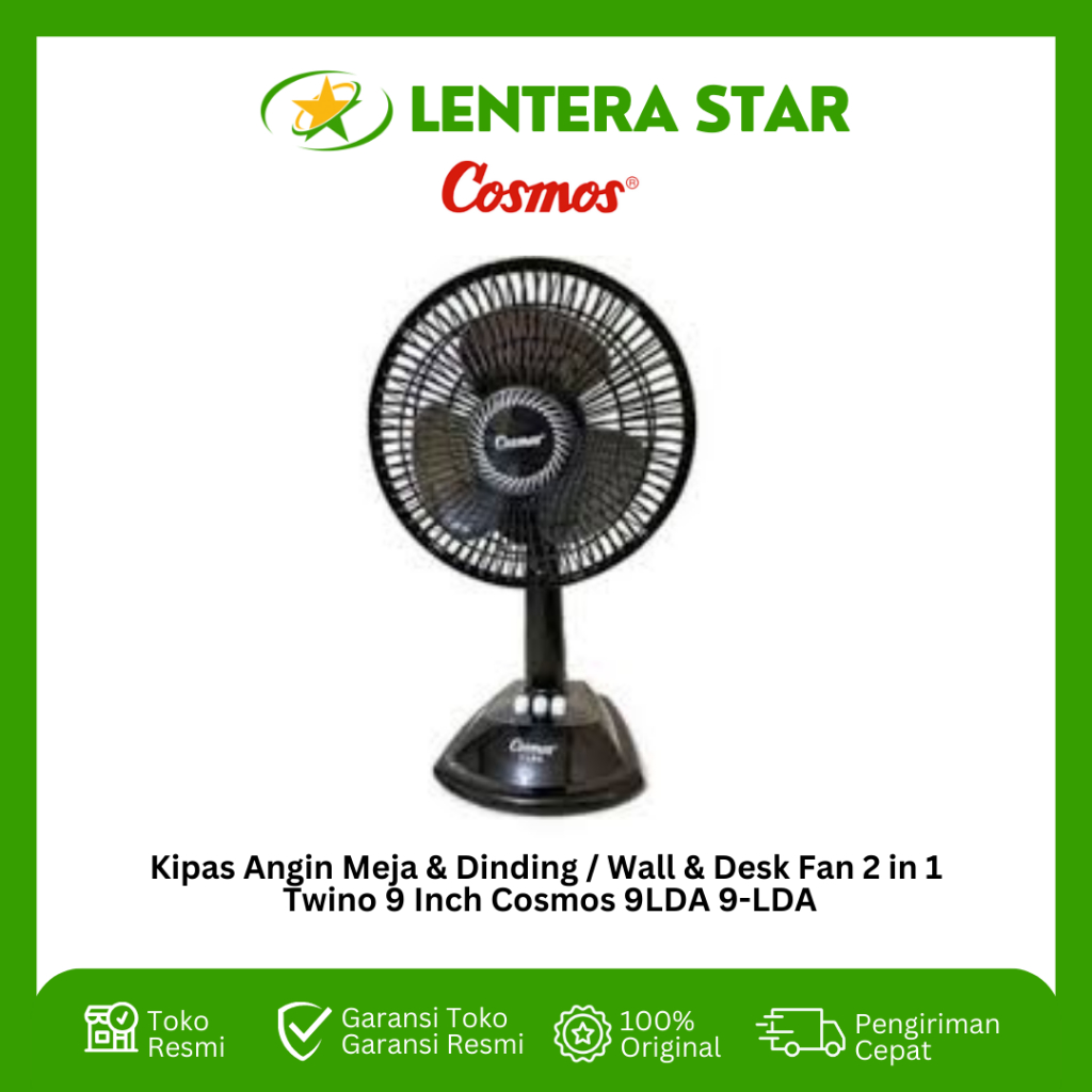 KIPAS ANGIN MEJA & DINDING WALL & DESK FAN 2 IN 1 TWINO 9 INCH COSMOS 9LDA 9-LDA 9DNA 9-DNA