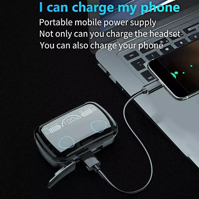 Headset Bluetooth Full Bass Powerbank 3500 Mah TWS Wireless Earphone Original