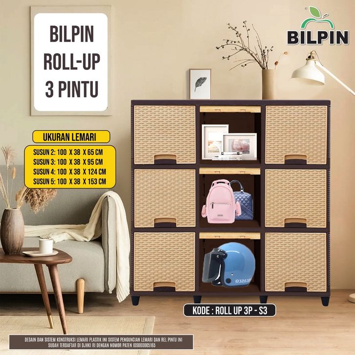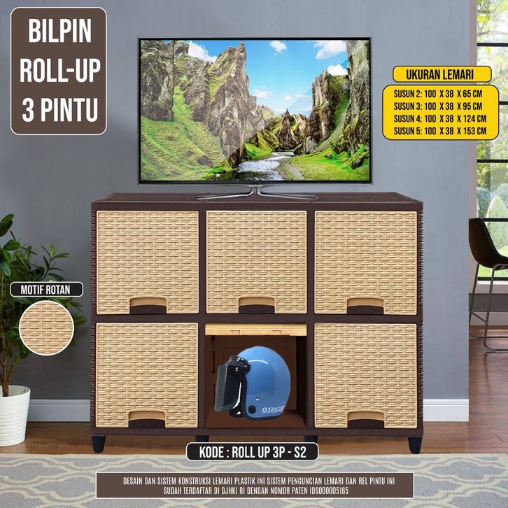 LEMARI PLASTIK AKAKO SWING 3 PINTU 2 SUSUN ROLLUP 30 MEJA TV PLASTIK SERBAGUNA BERKUALITAS JUMBO MINIMALIS
