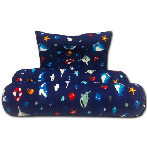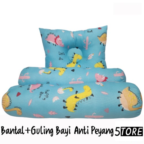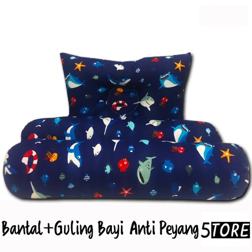 BANTAL GULING BAYI ANTI PEYANG - 3IN1 SET PERLENGKAPAN TIDUR BAYI - BIRU