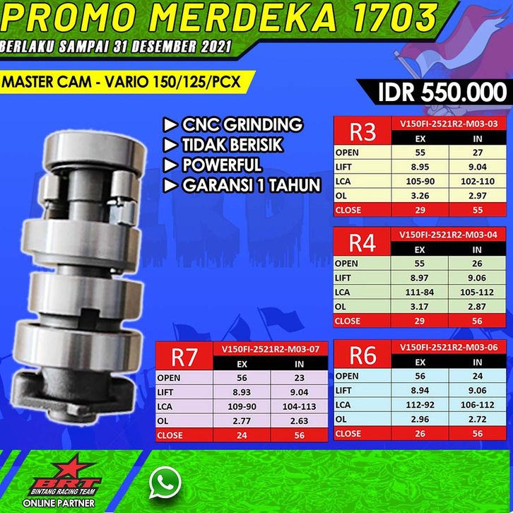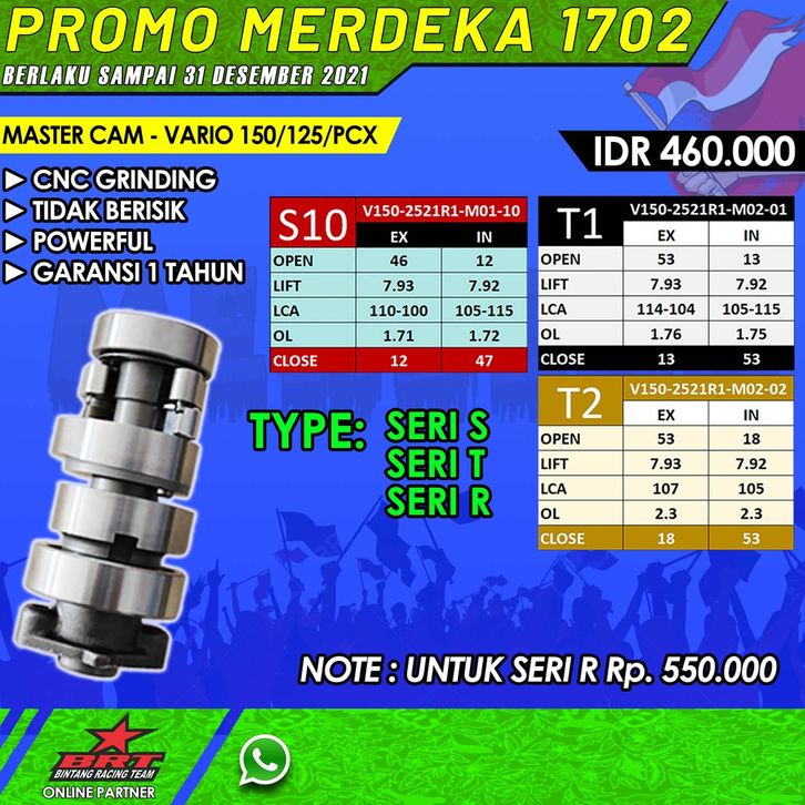 Master Cam BRT Noken as Vario 125 150 PCX 150 ADV 150 ADS S13 T1 T2 / Noken As Brt / Noken As Brt Vario 125 / Vario 150