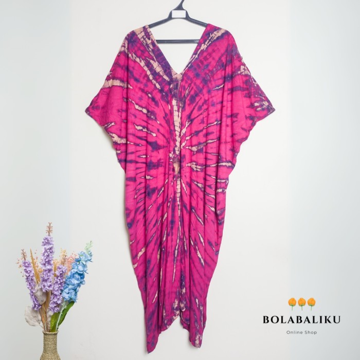 DRESS TIE DYE KAFTAN JUMBO MODEL LUBANG DI LENGAN (DASTER KELELAWAR) - FUCHSIA