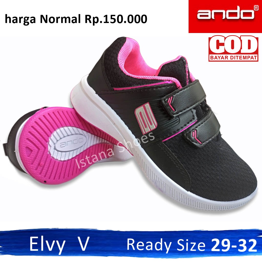 SEPATU SEKOLAH ANAK PEREMPUAN ANDO ZORA HITAM PINK PAUD TK SD KETS PEREKAT