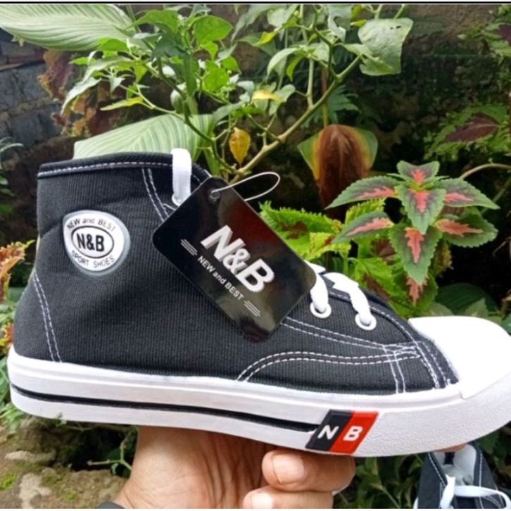 TERLAKU sepatu sekolah NB boot tali hitam putih bahan canvas barang lokal acekb