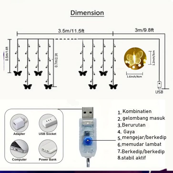[Star] Lampu Dekorasi Pelaminan Standing 2 Set Lampu Dekorasi Kupu Kupu 150Cm Lampu Hiasan Dekorasi Cabang Event Wedding