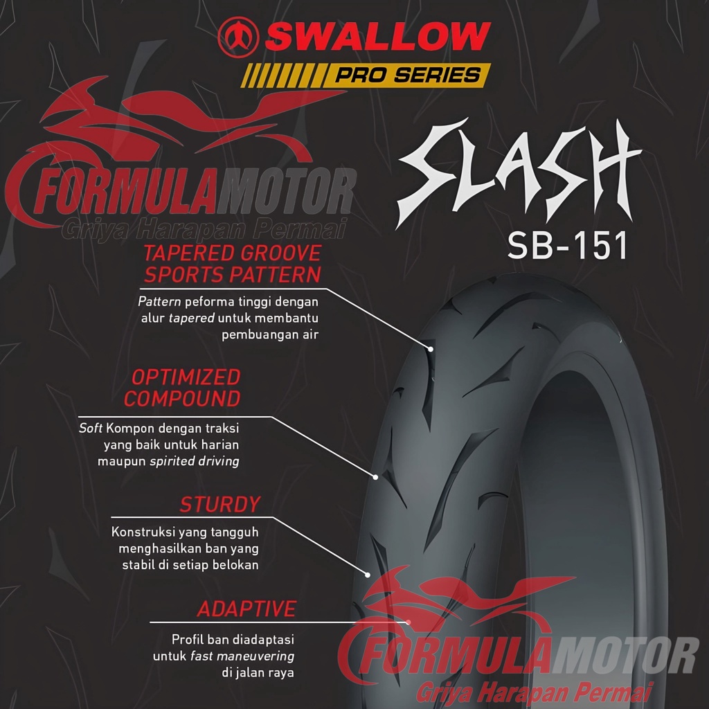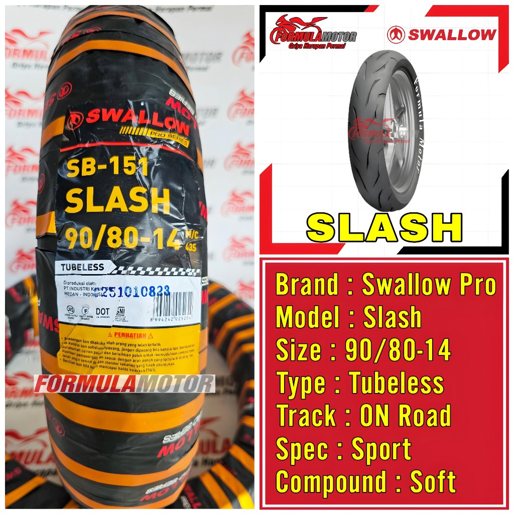 90/80-14 Swallow Slash Ring 14 Tubeless (Profil Donat Soft Compound) Ban Depan Vario-150/LED, Beat Upsize Tubles SB151