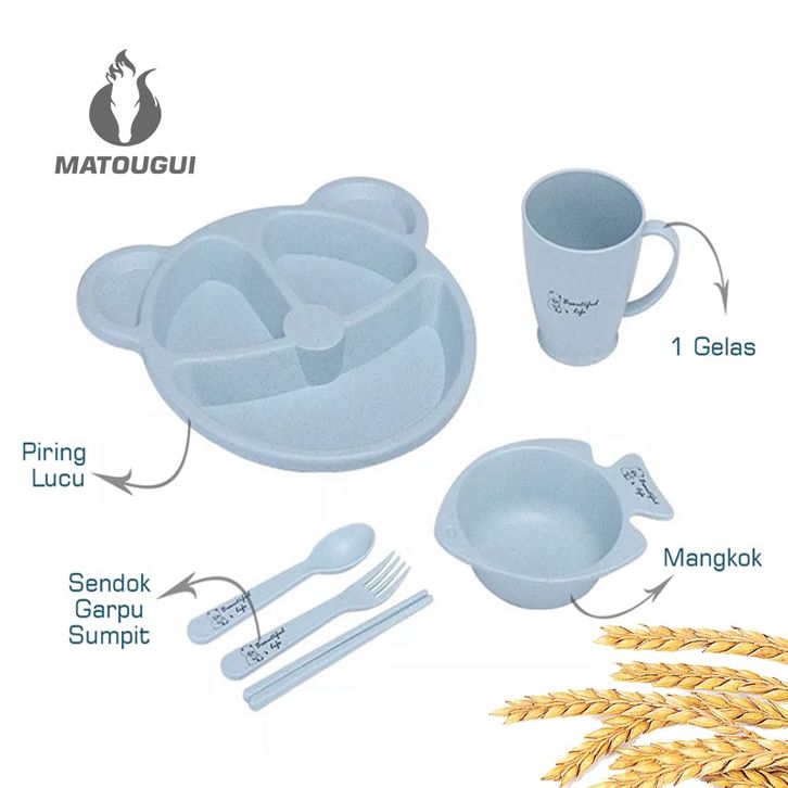 MATOUGUI - Tempat Makan Anak 1 Set Peralatan Piring Lucu Bayi Wheat / Peralatan Makan Anak Lengkap Mangkok Sendok Garpu