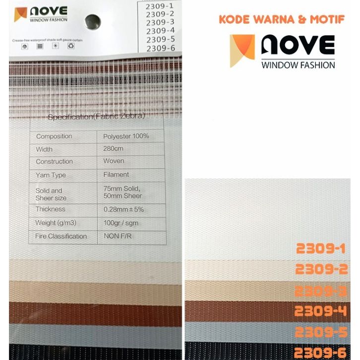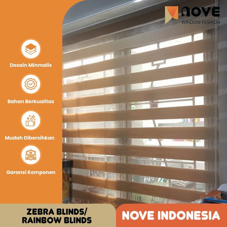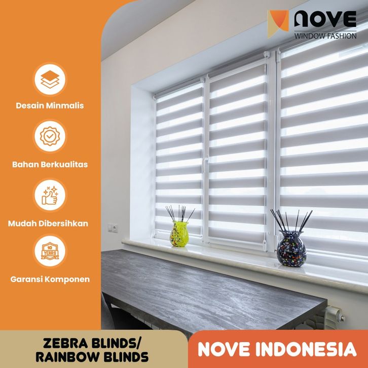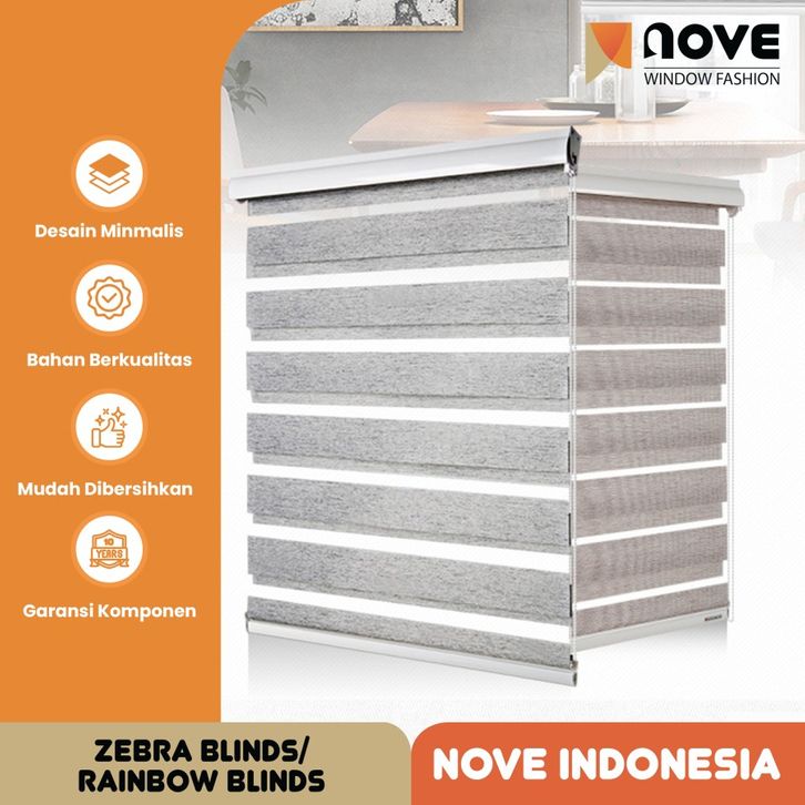 Nove Zebra Blinds Dimout-Blok Cahaya-Tirai Gulung Benang Kain