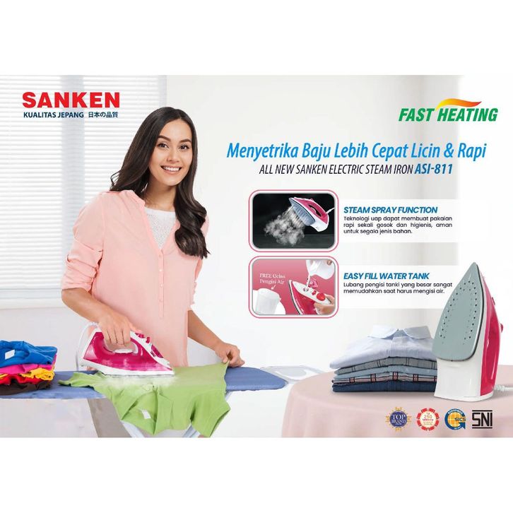 Sanken Setrika Uap ASI-811PI Steam Iron Pink KUALITAS TERBAIK