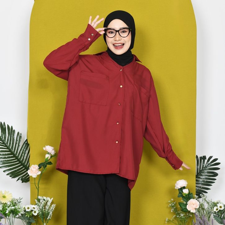 MYBAMUS YESSI BUTTON SHIRT – KEMEJA KERAH V - KEMEJA KERJA WANITA - BAJU ATASAN KEMEJA - ATASAN DEWASA MURAH ORIGINAL