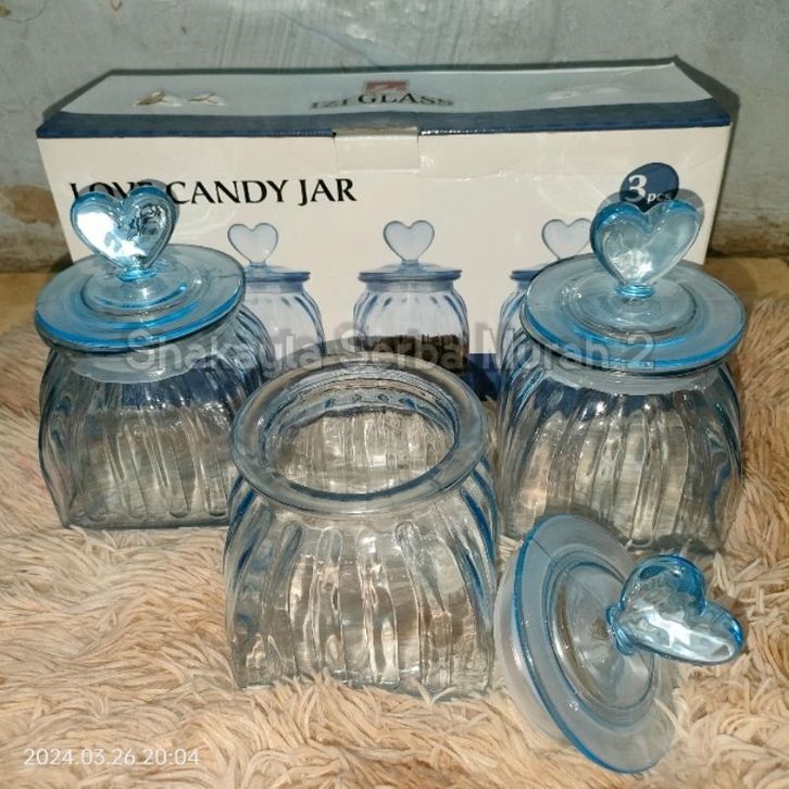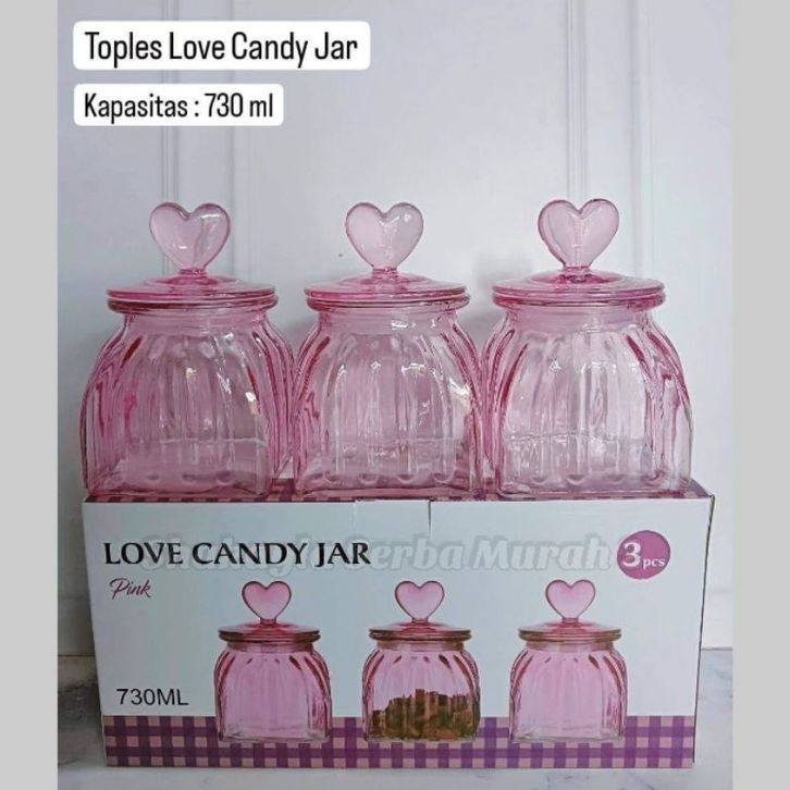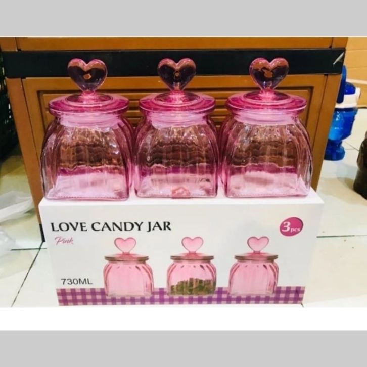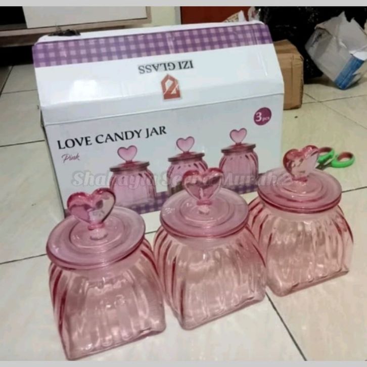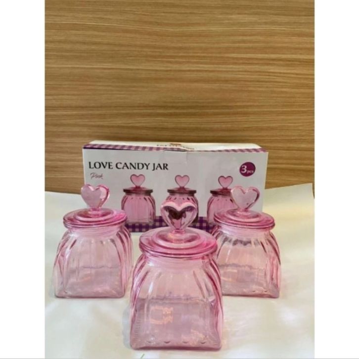 Toples Lebaran Cantik 1 Set 5 Pcs (3 PCS) Toples Love Candy Jar / Toples Kedap Udara / Toples Kaca / Toples Lebaran
