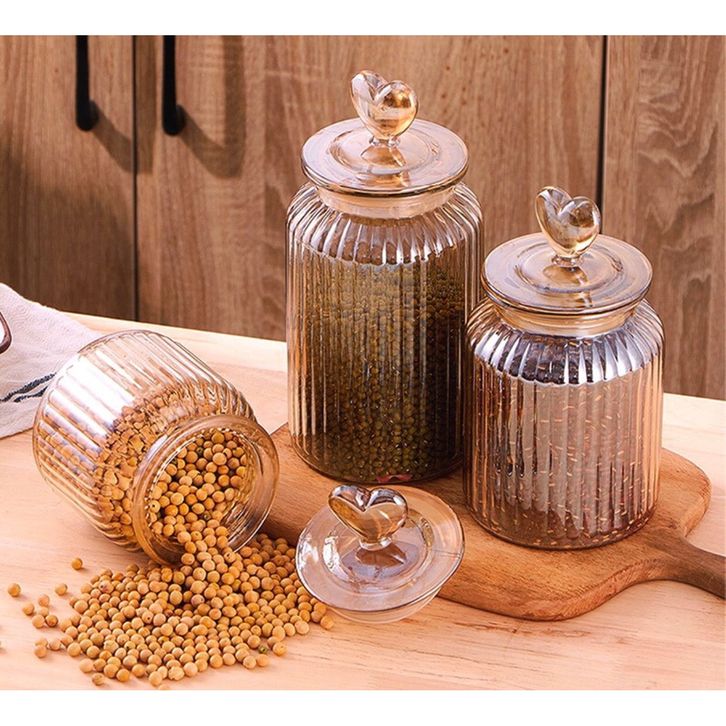 Toples Lebaran Cantik 1 Set 5 Pcs [ME] Toples Kaca Kedap Udara Satuan / Toples Kue Lebaran / Toples Candy Termurah